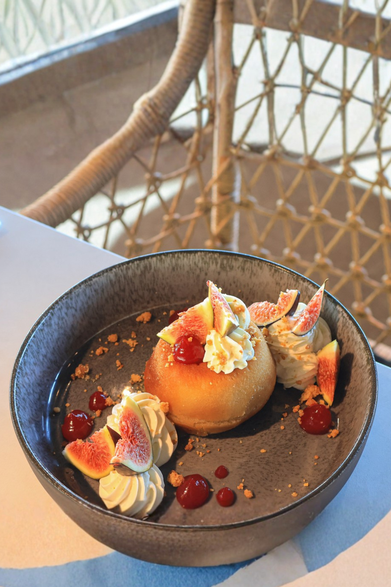 BABA MAISON IMBIBÉ AU SIROP VANILLE, CRÈME MONTÉE À LA CARDAMOME, CONFIT DE FIGUES & FIGUES FRAÎCHES avec ou sans rhum