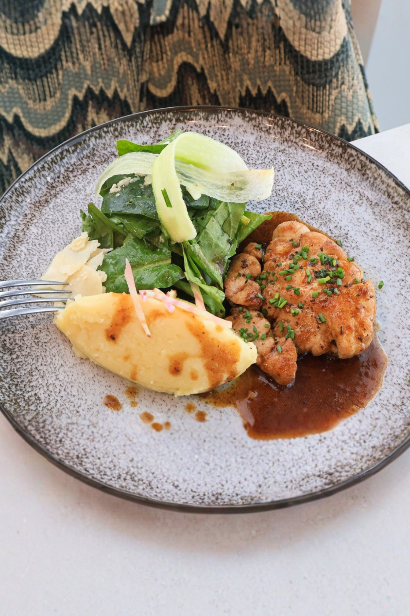 RIS DE VEAU (origine france), PURÉE DE POMMES DE TERRE, SALADE D'ÉPINARDS VINAIGRETTE YUZU PARMESAN